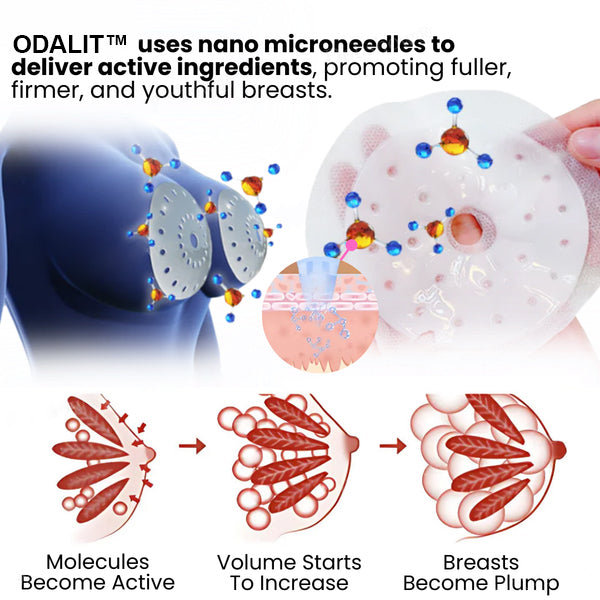 Discover why women across the USA love the ODALIT™ Breast Enhancement Nano Patch—a breakthrough in natural breast enhancement. Using advanced nano microneedle technology, each patch delivers active ingredients beneath the skin’s surface, helping to boost fullness, improve firmness, and achieve long-lasting, visible results.