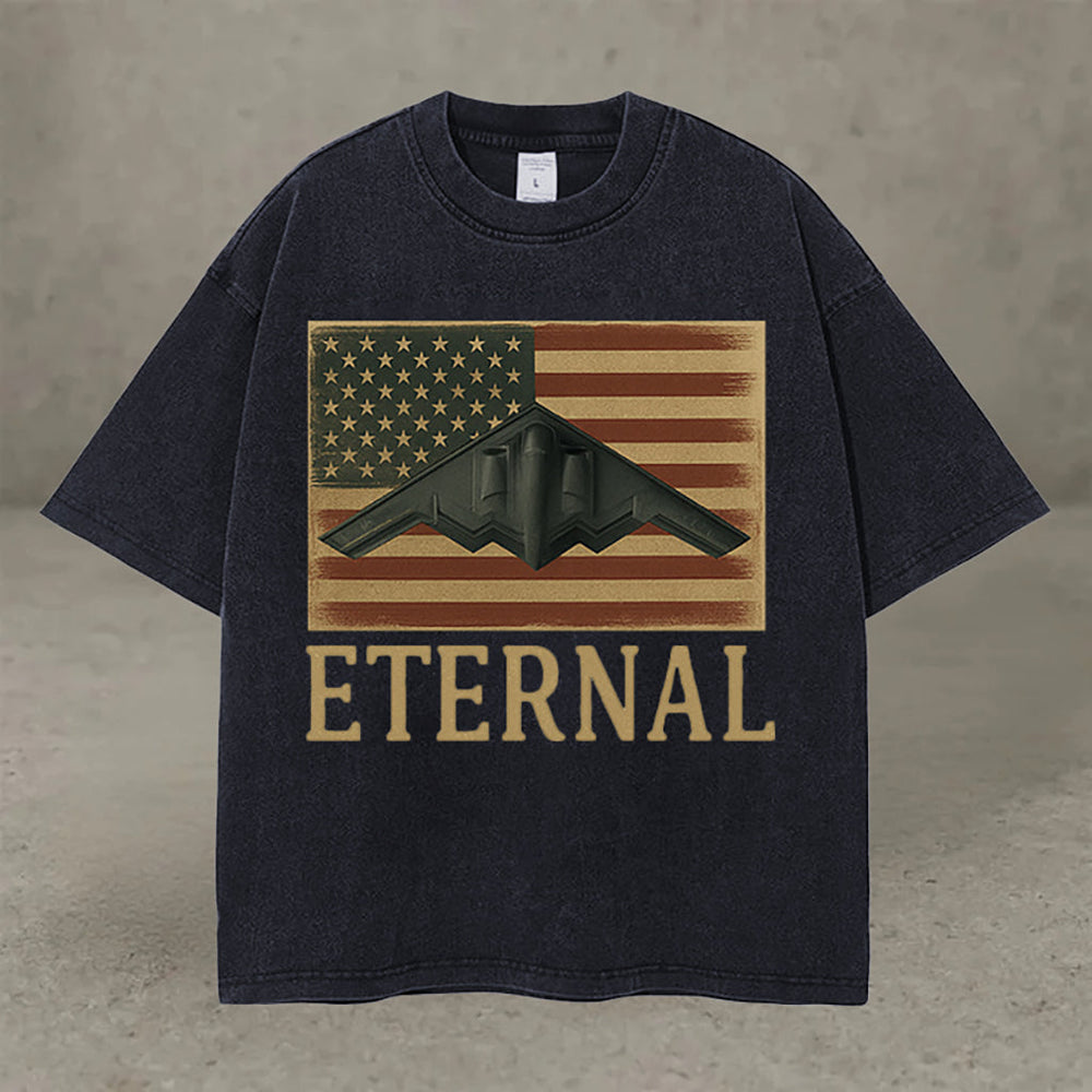 From backyard barbecues to open-road adventures, this tee blends rugged Americana with effortless style. Inspired by the skies and stamped with legacy, the ETERNAL Flight Tee speaks in bold graphics, not words — just unshakable spirit.