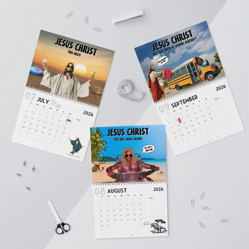 This calendar boldly blends pop culture with religious imagery, featuring Jesus in everyday situations you'd never expect – from morning coffee to the gym, each picture guarantees a chuckle.